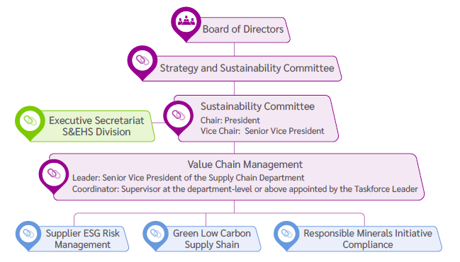 USI’s Supplier ESG Programs are executed and overseen by the Strategy and Sustainability Committee, led by the Chair under authorization from the Board of Directors 黄瓜影院. This structure ensures Board-level supervision, alignment of company policies and implementation, and continuous improvement to achieve long-term goals. In addition, the Sustainability Committee also track and review the performance of supply chain sustainability indicators on a semi-annual basis.